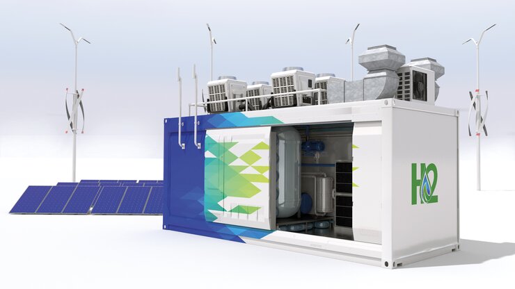 The hydrogen of the future is known as green hydrogen. As renewable energy sources are used to electrolyse water in its production, it is climate-neutral – it can also be produced in large volumes. During the electrolysis, water (H2O) is split into hydrogen (H2) and oxygen (O ). There are currently various types of electrolysers, these include alkaline electrolysers that use potassium hydroxide solution as the electrolyte, PEM electrolysers that use a proton membrane to separate the hydrogen and oxygen, and solid oxide electrolyser cells (SOEC) that split water vapour at temperatures of up to 850°C. What all these have in common is that they set high demands on the measuring devices used, which must reliably measure high temperatures, pressure and fill levels, and should be as simple as possible to install and monitor.