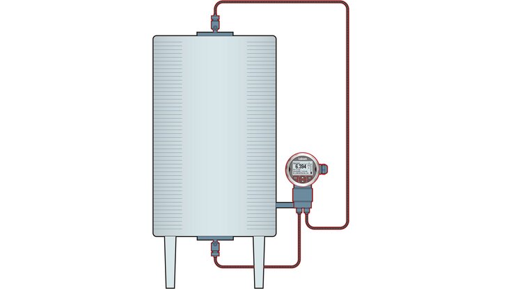 Determining differential pressure by means of a diaphragm is ideal for measuring filling levels when it is necessary to separate the measuring device from the measured fluid, for example, to satisfy hygienic demands or in case of aggressive chemicals. For these applications Labom offers a series of devices.