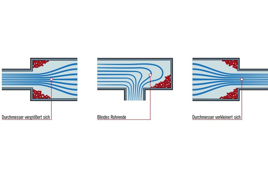 Für einen optimalen Durchfluss müssen bessere Lösungen für die örtliche Geometrie gewählt werden. Im Idealfall gibt es keinerlei Toträume.