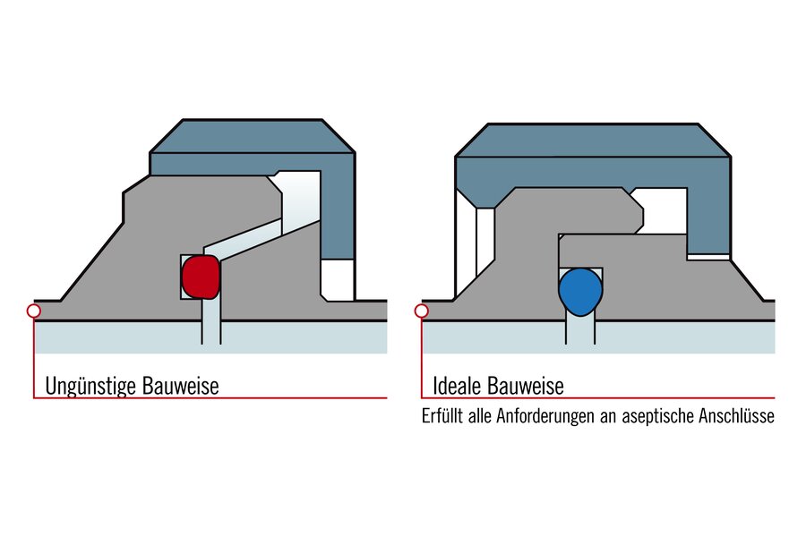 Messgeräte und Ausrüstungsteile werden mittels der bewährten Anschlusstechnik unter Verwendung von Dichtungen an den Prozess adaptiert. Eine Dichtung muss ihre Aufgabe über ihre gesamte Lebensdauer unter Berücksichtigung aller Prozess- und Reinigungsprozeduren erfüllen. Sie kann als O-Ring oder als Formdichtung ausgeführt sein.