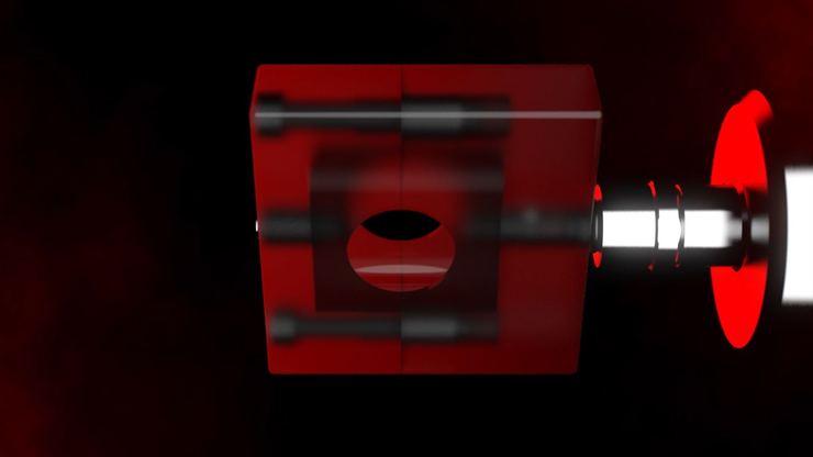 In this calibration concept, the measurement equipment is designed so that the comparison between measurement device and reference sensor can be performed while installed to the machinery („In-Process calibration“). The certified reference sensor is inserted into a special opening in the device.